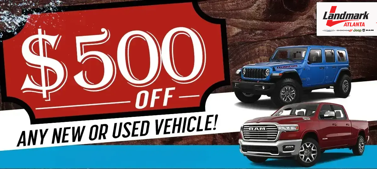 Stopping by whenever you have some free time to shop is highly encouraged, and our doors are always open to our friends in Atlanta. If your schedule is fit to burst with other upcoming events, an appointment is also a smart idea. Reserving some one-on-one time with one of our friendly experts guarantees that you get the most out of your valuable time spent perusing our copious inventory. You sure can, and it's amazingly simple and easy to use this complimentary tool on our website. While you're on the vehicle description page of the automobile that piques your interest, just click on the bell icon. After doing this, we'll let you know immediately the next time we lower this car, truck, or SUV's price so that you can take advantage of this great deal. It's a superbly convenient way to automatically save even more on your next vehicle purchase. Your valuable time is important to both you and our team, so we've streamlined the car buying and loan process significantly. All you need to bring with you to drive home in your dream vehicle are the following items and we will handle the rest: Yes. We would love to purchase your trade-in vehicle today. Our staff takes immense pride in providing the best prices possible on trade-in vehicles, so come see for yourself why so many other savvy shoppers turn to us first when the time comes to maximize the value of their old vehicle and upgrade into a brighter automotive future. Trading in your car at Landmark Chrysler Dodge Jeep Ram FIAT of Atlanta is significantly easier and substantially more rewarding than selling it on your own if you're a car shopper who places a high priority on convenience, value, and time well spent. To maximize the return on your old car, all you have to do is connect with our team of knowledgeable and friendly used car specialists by calling 470-769-8994 and we will get to work immediately on providing you with an outstanding estimate that delivers a truly impressive amount of value to you. After accepting your optimized and personalized trade-in quote, you can turn your attention right away to where the real fun begins: Shopping for the right high-quality and affordable used car, truck, or SUV to park in your front driveway.